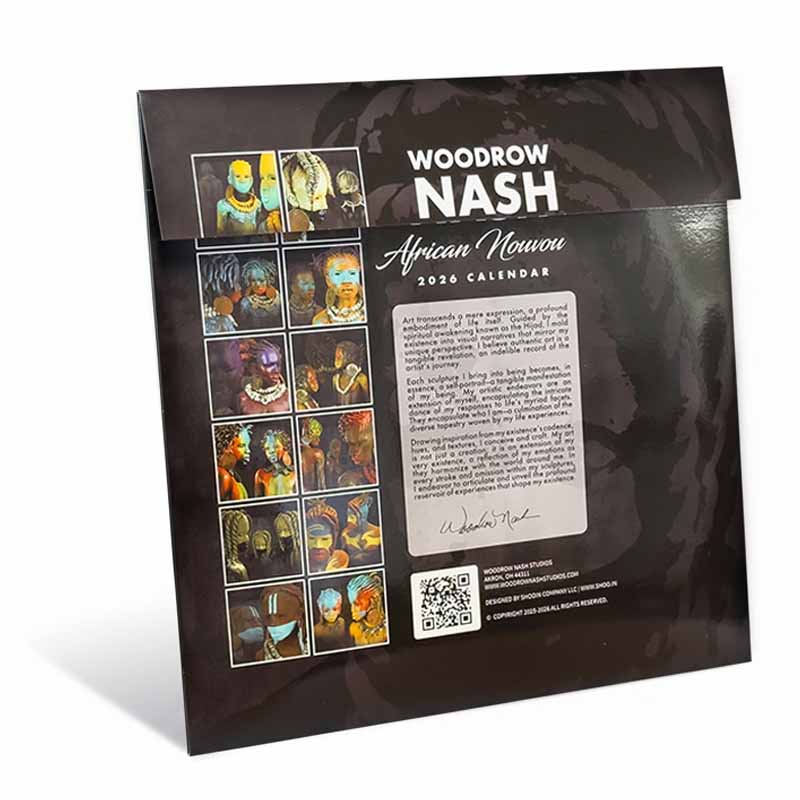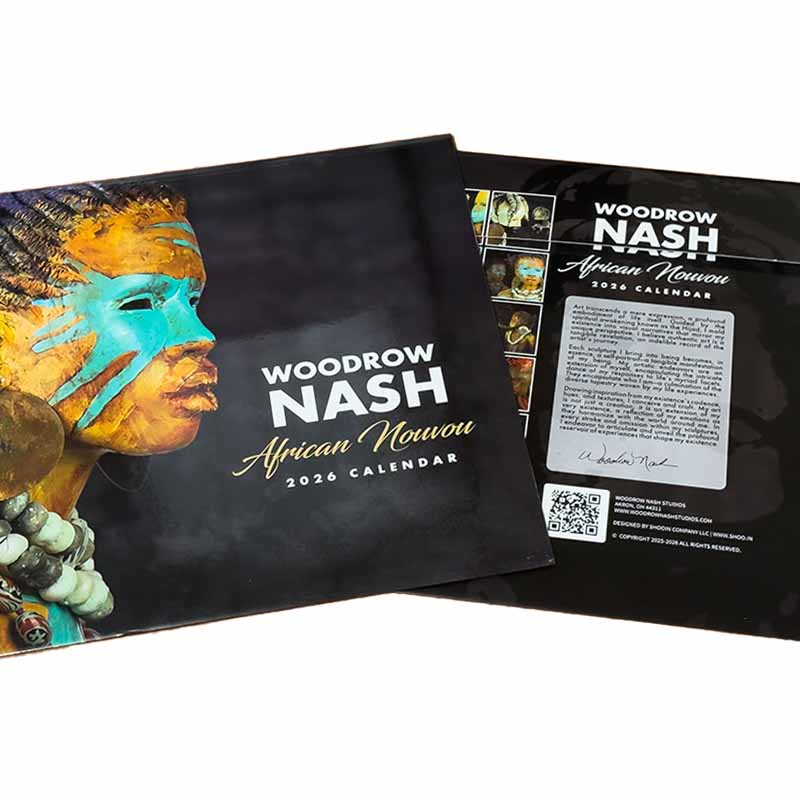 Use Code “FREE2026” for Free Shipping! Step into a year of inspiration with the 2026 Woodrow Nash Calendar — an oversized 14×14 visual journey through the spirit of African Nouveau.